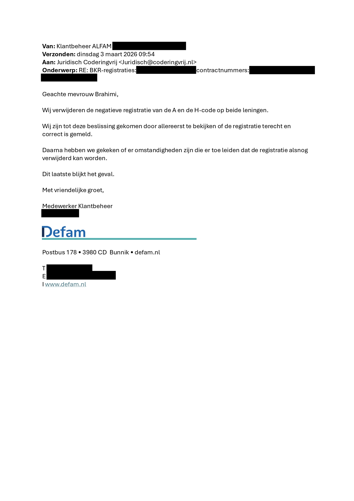 Adviesgesprek De reden dat cliënt de hulp van CoderingVrij inschakelde was omdat hij last had van één negatieve BKR-registratie bij het aangaan van een (nieuwe) hypotheek.